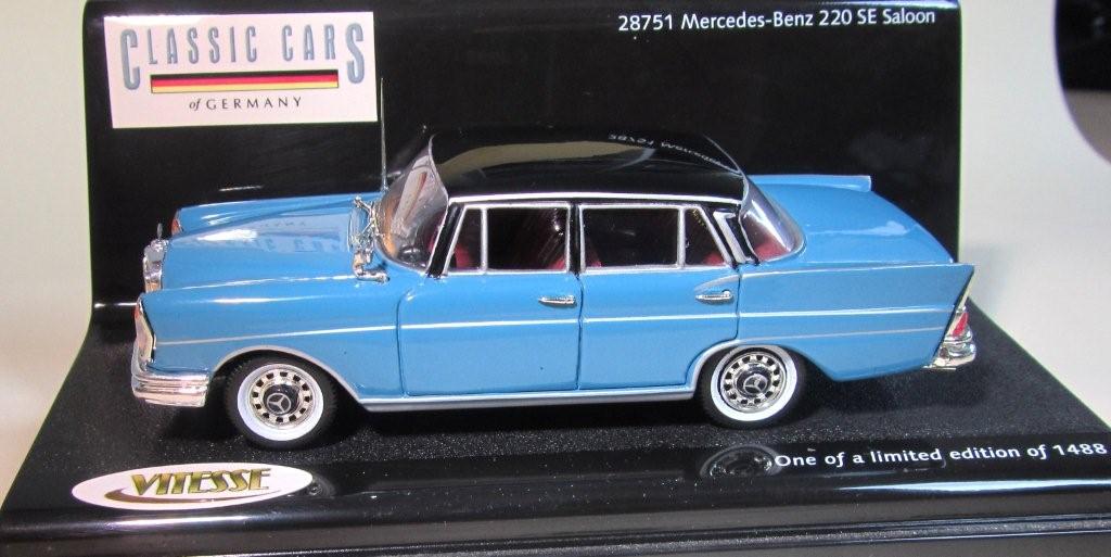 The 220S and 220SE are virtually the same car as the 220. The 220S and 220SE differ from the 220 by the extra chrome trim round the rear lights and by the extra chrome on the 'fins'. The differences between the 220S and 220SE are hard to find. The difference can be found in the engine, the 220SE had an fuel injection engine (the E in the SE stand for 'Einspritzung').