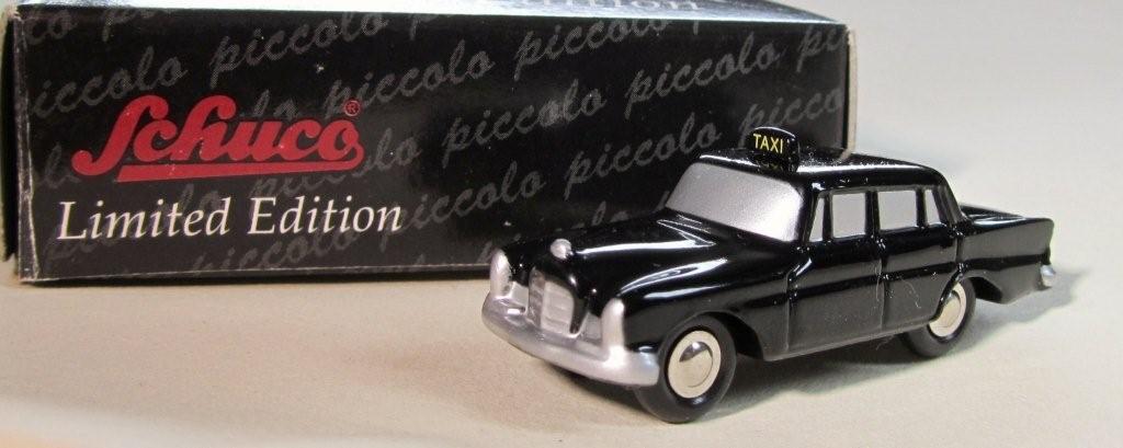 | Schuco Piccolo #724 | Germany | metal | 1:90 | Taxi in black (Special limited edition for the Taxi Zentrale Nurnberg, 1000 pieces) |