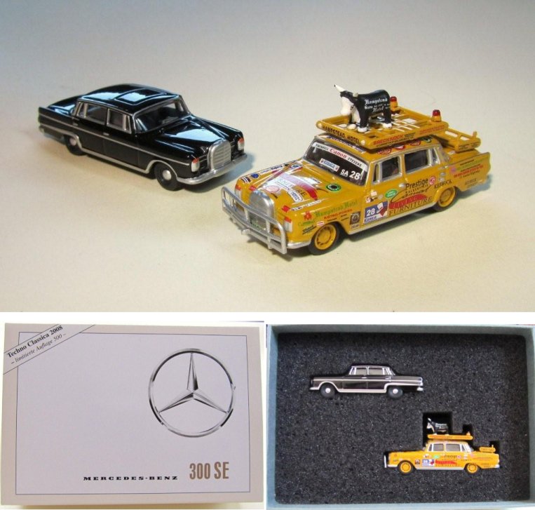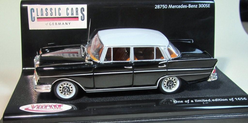 The 300 SE models were the best Mercedes could offer before the arrival of the 600 models (W100). The 300 SE had a fuel injection engine that was based on the engine of the famous 300SL Gullwing. All 300 SE's were fitted out with air spring suspension, power-assited steering and automatic transmission as standard. To distinguish them from the cheaper six cilinder models, Mercedes put extra chrome trimming round the wheelarches and along the body sills. The name '300SE' can be found on the chrome airvent. The Long Wheel Base 300 SE can be recognized by the lack of chrome on the C-pillar and, when looking carefully, by the 10 cm longer back doors.