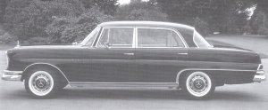 ![]() Although this car looks very elegant it never made production. You might say that it looks a bit like a W108 or W109. Note that the car has got the 300SE chrome trim on one side and not on the other. The rear looks very much like a Coupé, already having the same rearlights but lacking the same bumper. Looking this way, the car would have to loose its nickname unfortunately. |